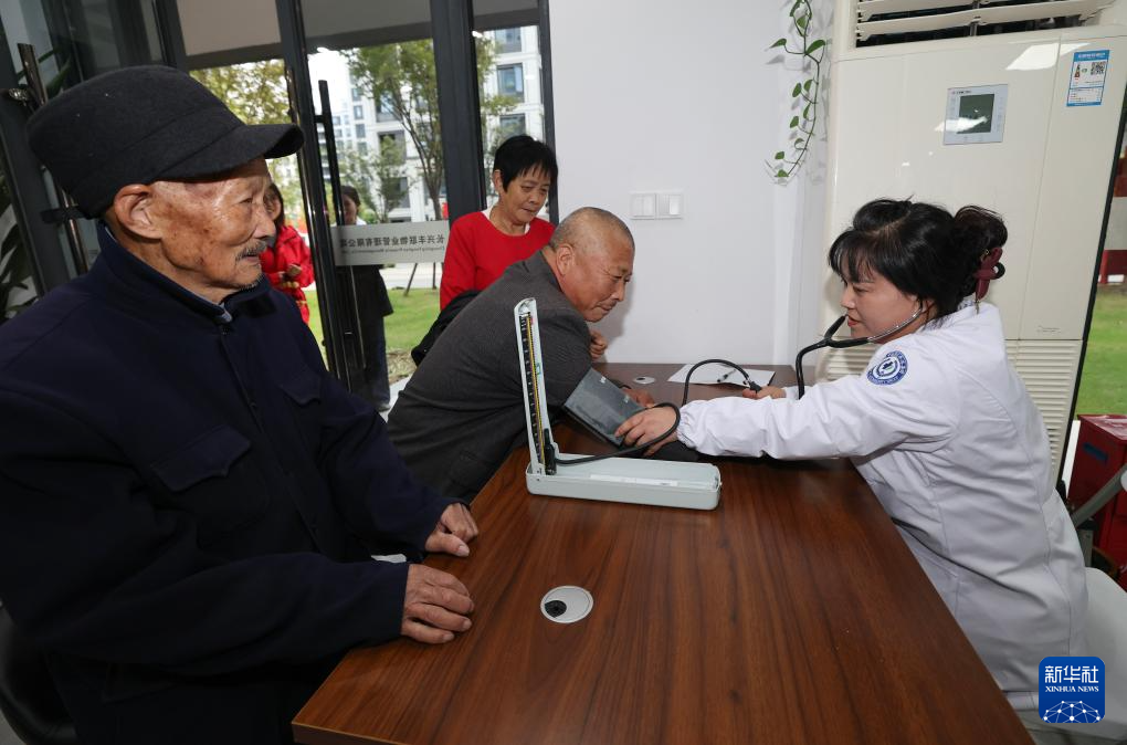 10月21日,醫(yī)務(wù)人員在給老人測血壓。