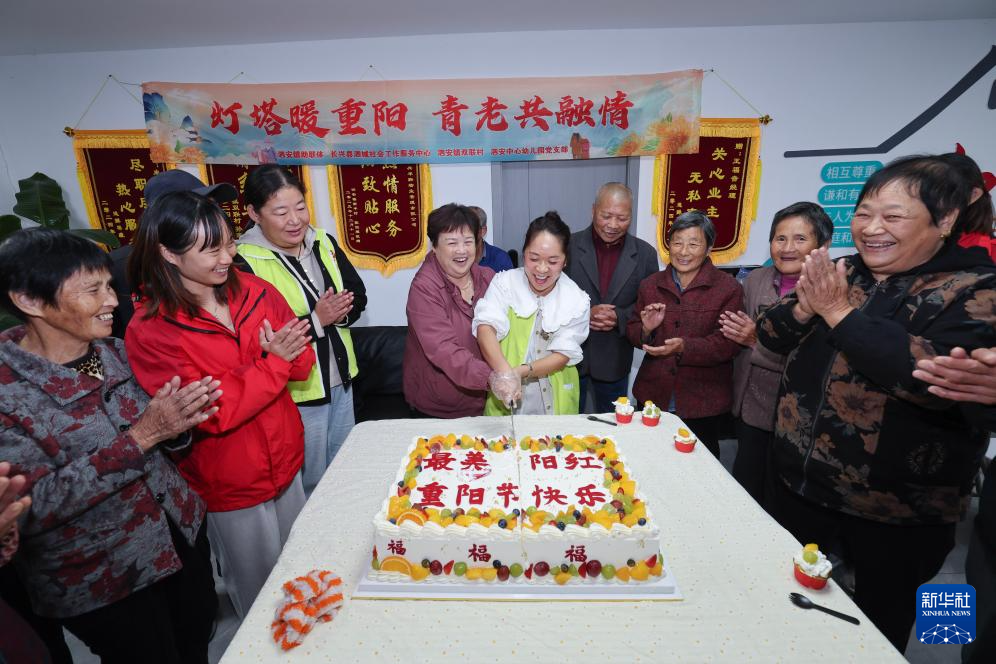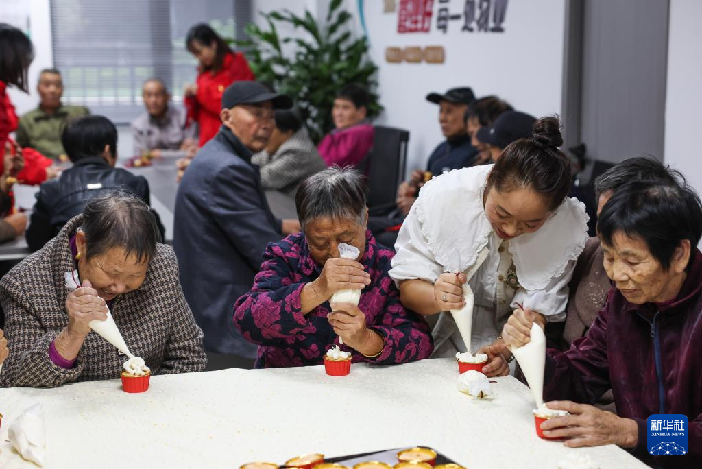 ??10月21日,浙江省湖州市長興縣泗安鎮(zhèn)社會救助服務(wù)聯(lián)合體組織青年志愿者們在雙聯(lián)村豐聯(lián)佳苑小區(qū)開展迎重陽敬老助老活動,包括義診、給老人拍合影、教老人做手工、給老人過集體生日等。青年志愿者們通過志愿服務(wù),弘揚(yáng)尊老敬老傳統(tǒng)美德,傳遞溫暖。新華社記者 徐昱 攝