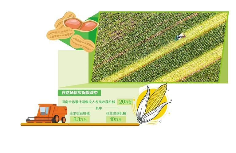 “早準備、快搶收、強保障”,這9個字在這場抗災(zāi)保糧戰(zhàn)中得到生動詮釋。數(shù)據(jù)顯示,河南全省累計調(diào)集投入各類收獲機械20萬臺,其中玉米收獲機械8.3萬臺,花生收獲機械10萬臺;累計投入履帶式玉米收獲機7980臺,其中7014臺是通過“換裝割臺”實現(xiàn)“一機多用”的成果。742支農(nóng)機應(yīng)急作業(yè)服務(wù)隊、832個區(qū)域農(nóng)機服務(wù)中心全部投入戰(zhàn)斗,在泥濘的田野里形成一道抗災(zāi)搶收的風景線。