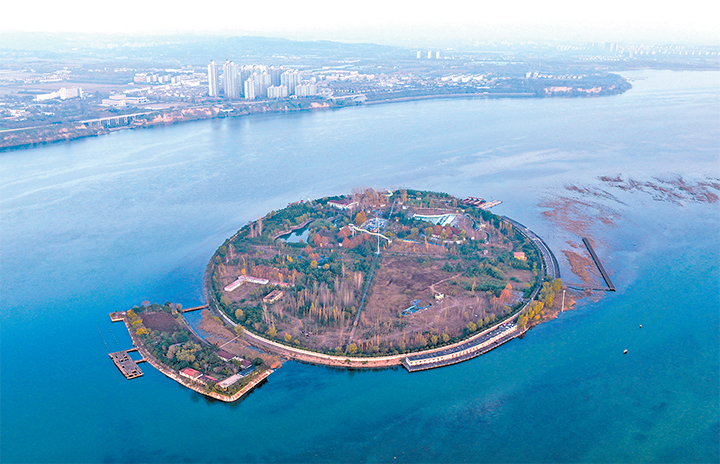 初冬時(shí)節(jié),西灘島層林盡染,多彩景致交織成一幅醉人冬景圖。記者 段二平 通訊員 周順 攝