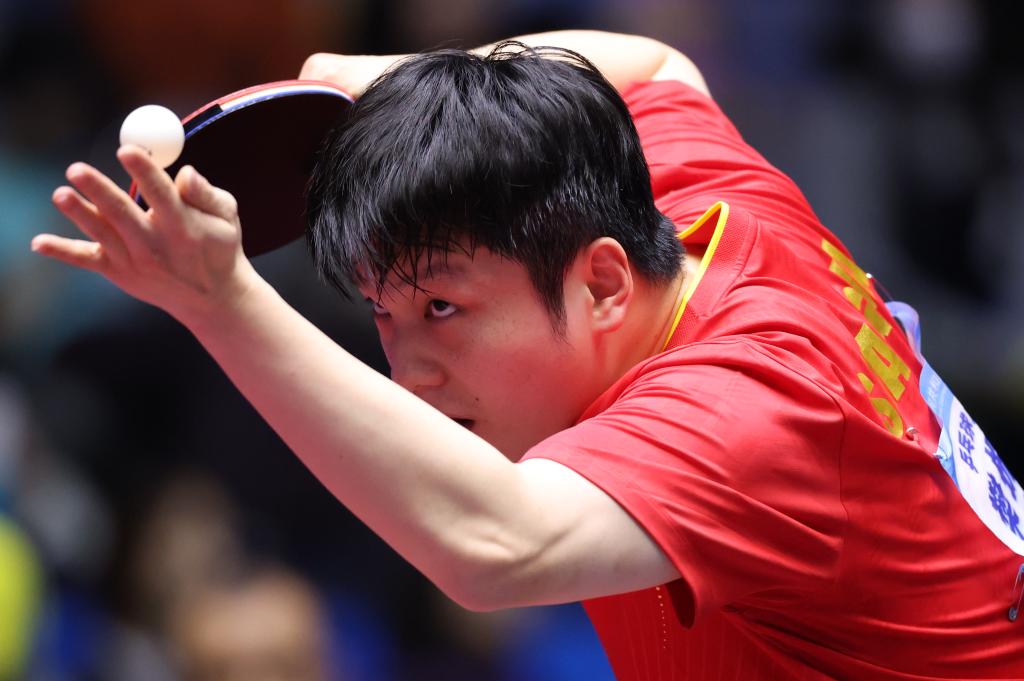 11月18日,北京隊選手王楚欽在比賽中。新華社發(fā)(張金加 攝)