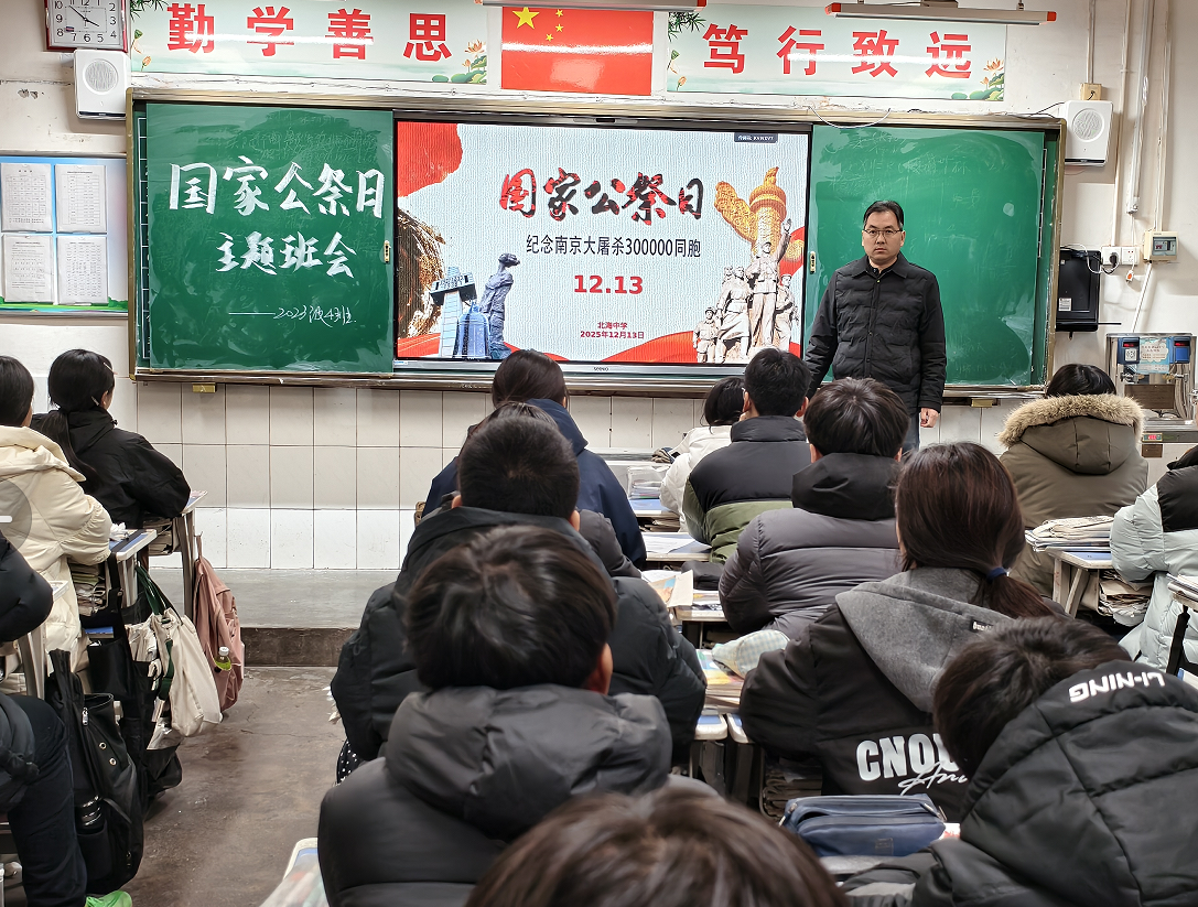活動伊始,現(xiàn)場氛圍莊嚴(yán)肅穆,全體師生肅立凝神,共同緬懷南京大屠殺遇難同胞。北海中學(xué)歷史老師以時間為脈絡(luò),結(jié)合詳實(shí)的歷史史料、珍貴的歷史圖片,生動講述南京大屠殺那段屈辱悲壯的歲月,清晰還原1937年南京城遭受的空前浩劫,細(xì)致梳理遇難同胞所承受的深重苦難與中華民族不屈不撓的抗?fàn)帤v程,讓同學(xué)們直觀感受歷史的沉重與和平的珍貴。隨后,播放的大型紀(jì)錄片《南京大屠殺》片段及視頻《1937年的南京》,真實(shí)的歷史畫面、震撼人心的場景直擊心靈,在場學(xué)子神情凝重,不時眼眶濕潤,深切體會到戰(zhàn)爭的殘酷與侵略者的暴行,更堅(jiān)定了銘記歷史、緬懷先烈、珍愛和平的堅(jiān)定信念。