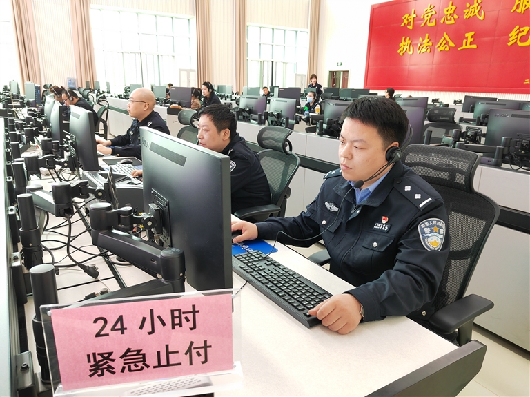 新鄉(xiāng)市公安局刑偵支隊民警王凱顏開展接警止付工作。馬旭陽 攝