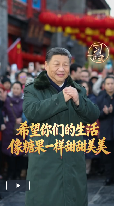 每逢春節(jié)前夕,總書記都會走到基層、百姓中間。在天津古文化街,總書記掏錢買麻花作為見面禮,送給身旁的小朋友,說“送你一份麻花”;在遼寧,總書記接下孩子們遞來的糖果,親切地說,你們的糖我收下,吃了你們的糖心里很甜。一個個親切有愛的感人畫面,充滿了溫情,傳遞著感動。