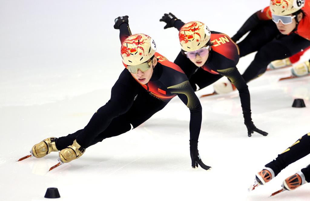 1月29日,中國短道速滑隊選手在訓(xùn)練中。新華社記者 張晨 攝