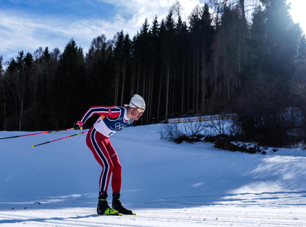 ??2月8日,冠軍挪威選手克萊博在比賽中。當(dāng)?shù)貢r間2月8日,米蘭-科爾蒂納冬奧會越野滑雪男子雙追逐比賽在意大利泰塞羅舉行。新華社記者 彭子洋 攝