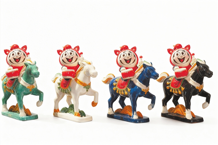 “馬上旺”彩瓷。河南非遺美學館供圖