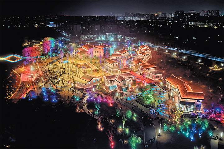 2月12日,市民在濟水長歌新春游園燈會上游玩。春節(jié)將至,示范區(qū)花燈流光溢彩、璀璨奪目,營造出喜慶祥和的節(jié)日氣氛。 記者 段二平 通訊員 周順攝