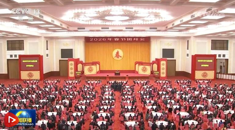 中共中央、國務(wù)院14日上午在人民大會堂舉行2026年春節(jié)團(tuán)拜會。中共中央總書記、國家主席、中央軍委主席習(xí)近平發(fā)表講話,代表黨中央和國務(wù)院,向全國各族人民,向香港特別行政區(qū)同胞、澳門特別行政區(qū)同胞、臺灣同胞和海外僑胞拜年。