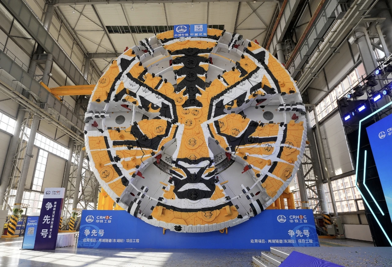 超大直徑泥水平衡盾構(gòu)機“爭先號”下線。