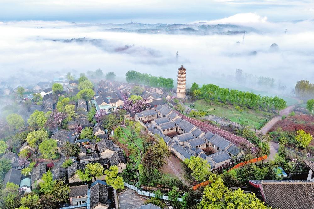 4月9日,云霧中的王屋鎮(zhèn)愚公村。