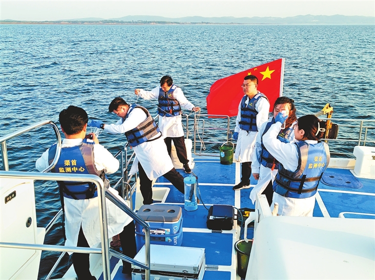 工作人員在丹江口水庫庫區(qū)進(jìn)行水生生物采樣。