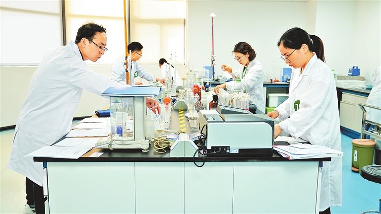 工作人員在實(shí)驗(yàn)室檢測(cè)分析樣本。