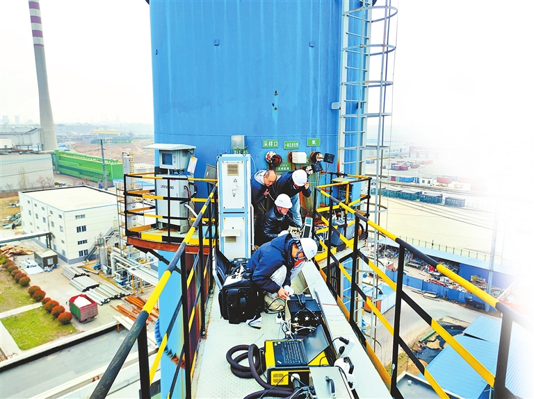 工作人員在污染源現(xiàn)場監(jiān)測(cè)。