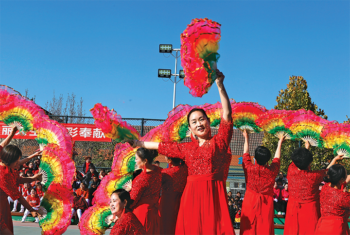 12月4日,天壇街道廣場(chǎng)舞愛(ài)好者在參加比賽。