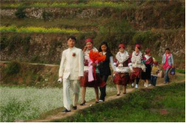 婚禮是完成婚姻大事的最后一道程序。結(jié)婚前一天,男方要派車到女方家拉嫁妝,女方家的小姑子、嫂嫂則要拉箱禮錢,熱熱鬧鬧,一直到下午才放鞭炮返回。