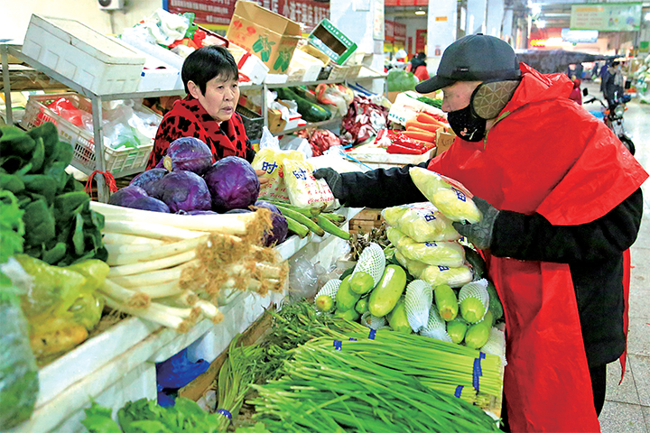 1月7日,顧客在南街菜市場(chǎng)選購蔬菜。