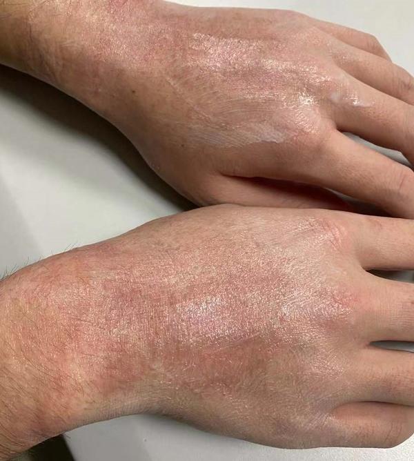 “一個(gè)夜班下來(lái),精疲力盡?!?月1日上午,剛下夜班的河南援鄂醫(yī)療隊(duì)隊(duì)員、鄭州大學(xué)第二附屬醫(yī)院呼吸內(nèi)科主任醫(yī)師王林梅感慨,有的醫(yī)護(hù)人員由于長(zhǎng)時(shí)間戴著橡膠手套工作,再經(jīng)過(guò)消毒液和洗手液反復(fù)侵蝕,已經(jīng)導(dǎo)致雙手紅腫過(guò)敏、皮膚受損?! ?/p>