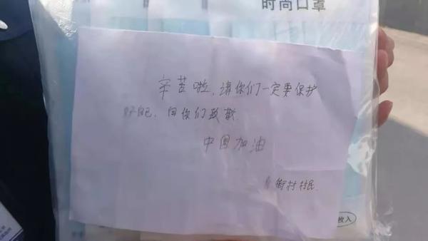 南樂縣城關(guān)派出所一民警正在執(zhí)勤時,東街一熱心群眾扔下兩包口罩就跑了,沒有留下姓名和聯(lián)系方式,上面寫著“辛苦啦,請你們一定要保護好自己,向你們致敬。中國加油——東街村村民!民警說,雖然沒有看清這位熱心人的長相,但還是想通過媒體表達一下心意:“你‘逃跑’的樣子真帥!中國有你真好!”