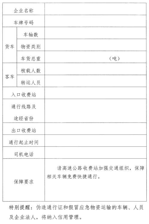 關(guān)于辦理使用應(yīng)急運(yùn)輸通行證工作的通告