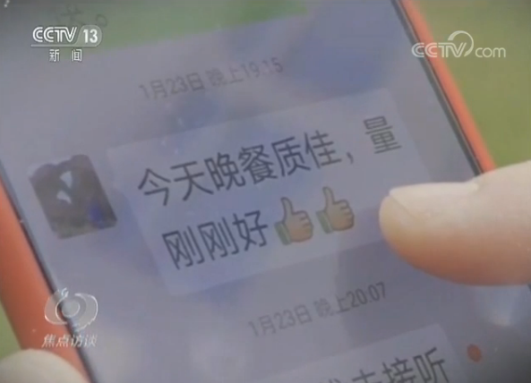 將近半個(gè)月來(lái),在袁女士和老伴盧先生的聊天記錄里,經(jīng)常能看到先生夸獎(jiǎng)自己手藝的信息。盧先生1月初因?yàn)榇_診新型冠狀病毒感染肺炎住進(jìn)了隔離病房里,每天的“點(diǎn)餐”和“點(diǎn)評(píng)”就是他病情的晴雨表。