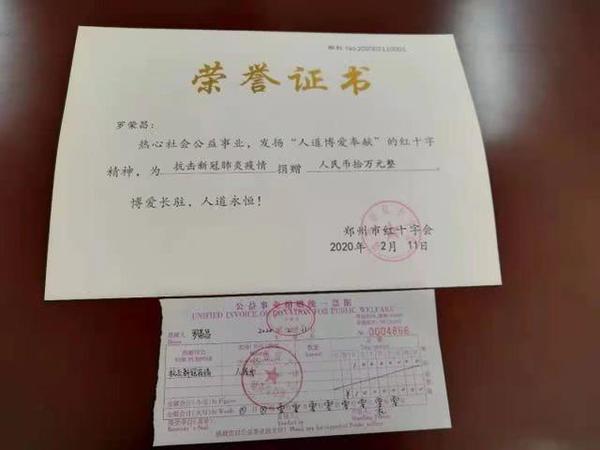 2月11日上午10時(shí),鄭州市88歲的離休老干部羅榮昌,以個(gè)人名義通過鄭州市紅十字會(huì)捐款10萬元,用于鄭州市抗擊新冠肺炎疫情防控工作。這也是河南省紅十字系統(tǒng)向社會(huì)公布接收疫情防控捐贈(zèng)方式以來,收到的個(gè)人單筆最高捐款。