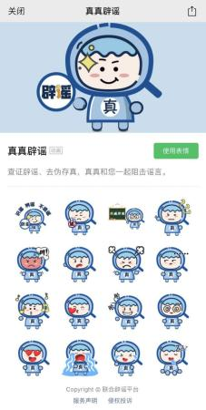 中國互聯(lián)網(wǎng)聯(lián)合辟謠平臺“真真辟謠”表情包正式上線