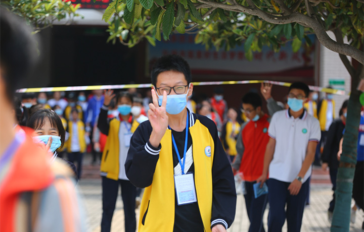 疫情尚未結(jié)束,今年的中考多了些新設(shè)備,在各考點(diǎn)入口處設(shè)置了專用通道,對(duì)考生進(jìn)行體溫檢測(cè),考生需佩戴口罩依次進(jìn)入;現(xiàn)場(chǎng)考點(diǎn)引導(dǎo)、疏散人群……志愿者們成為一道為學(xué)生保駕護(hù)航的風(fēng)景線。