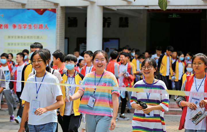 考生面帶笑容,走出考場(chǎng)