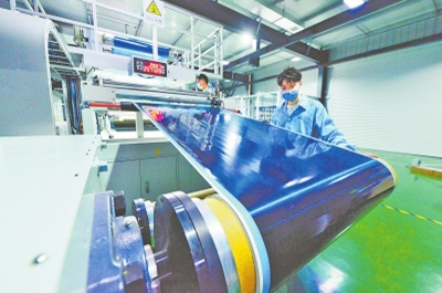 6月22日,在位于洛陽市先進(jìn)制造業(yè)集聚區(qū)的洛陽尖端技術(shù)研究院生產(chǎn)車間,碳纖維預(yù)浸料生產(chǎn)線正在滿負(fù)荷運(yùn)轉(zhuǎn)。資料圖片