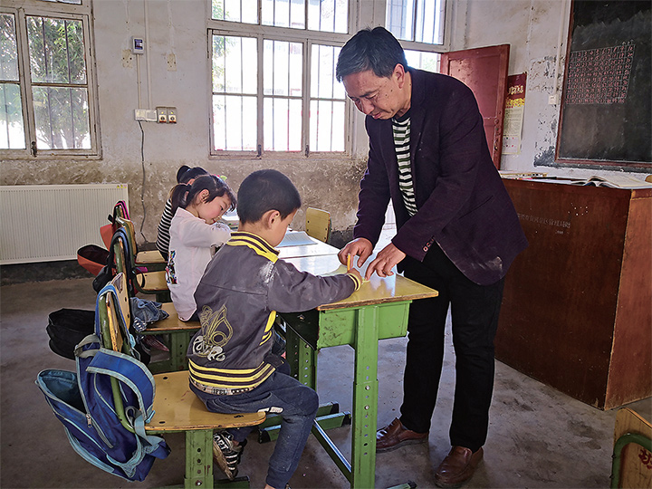 教學(xué)點(diǎn)只有一幢蓋于20世紀(jì)80年代的兩層小樓,2個(gè)年級(jí),8名學(xué)生,56歲的杜戰(zhàn)領(lǐng)在此堅(jiān)守了38年。他說(shuō):“我生在大山,長(zhǎng)在大山,深知山區(qū)孩子上學(xué)之苦,不能讓他們沒(méi)學(xué)上。”就這樣,從1982年參加工作到現(xiàn)在,杜戰(zhàn)領(lǐng)從青蔥少年到滿頭華發(fā),用38年的堅(jiān)守踐行著自己對(duì)鄉(xiāng)村教育的誓言。