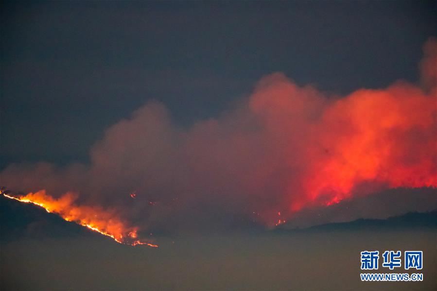這是8月19日在美國(guó)舊金山灣區(qū)圣馬特奧縣風(fēng)山自然保護(hù)區(qū)拍攝的山火。 新華社發(fā)(董旭東 攝)