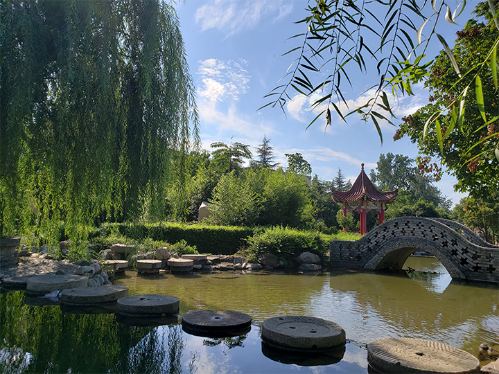 水泥村道干凈整潔,農(nóng)家院落錯(cuò)落有致,房前屋后綠樹掩映,清新的空氣沁人心脾,各種鮮花競(jìng)相開放,小橋流水、魚戲荷塘頗具詩(shī)意,令人心曠神怡。一幅“村在林中、路在綠中、房在園中、人在景中、看得見山、望得見水”的美麗鄉(xiāng)村畫卷徐徐展開。