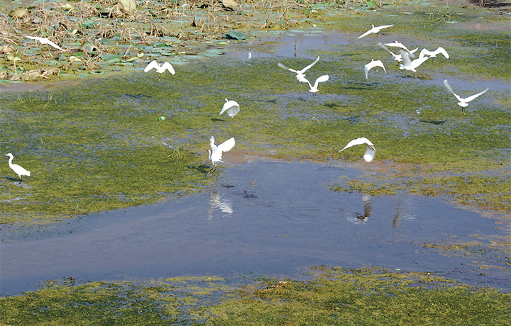 9月15日,一群白鷺在蟒河河道下嬉戲。