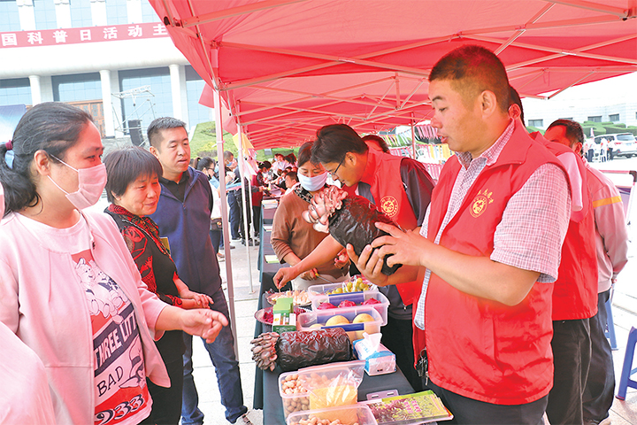 農(nóng)科院志愿者向群眾介紹產(chǎn)品