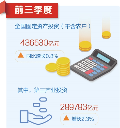 分產(chǎn)業(yè)看,第一產(chǎn)業(yè)投資同比增長14.5%,增速比前8個月加快3.0個百分點;第二產(chǎn)業(yè)投資下降3.4%,降幅收窄1.4個百分點;第三產(chǎn)業(yè)投資增長2.3%,增速加快0.9個百分點。