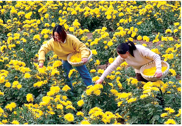 10月31日,在栲栳村“涵媽菊?qǐng)@”,村民們正忙著采摘菊花?!耙欢ㄒ烧獋€(gè)頭飽滿(mǎn),沒(méi)被蟲(chóng)咬的菊花,把采摘的新鮮菊花篩選、陰干后,再經(jīng)烘干機(jī)烘干,可以確保營(yíng)養(yǎng)成份和藥用成份不流失。”一名栲栳村村民一邊采摘菊花一邊告訴記者。