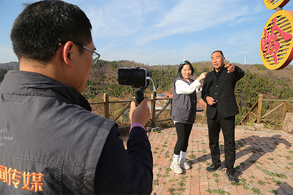 記者在大峪鎮(zhèn)東溝村進(jìn)行直播活動(dòng)