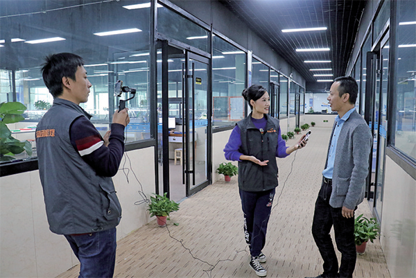 記者在中國(guó)白銀城進(jìn)行直播活動(dòng)