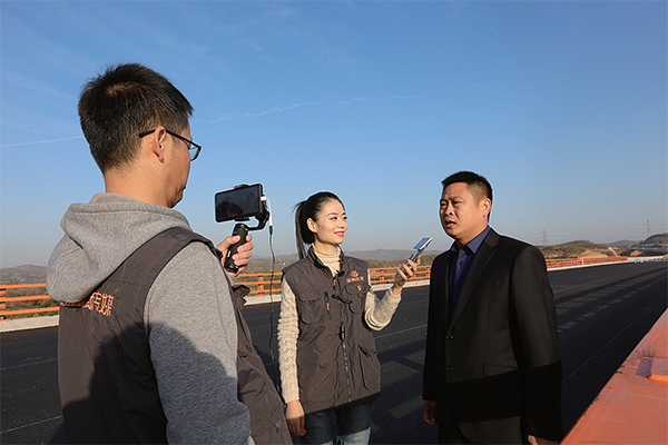 全媒體記者在正在建設(shè)中的濟(jì)洛西高速公路上直播采訪