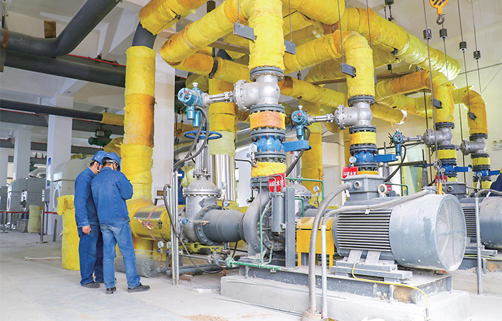 工作人員在供熱首站進(jìn)行設(shè)備調(diào)試檢查