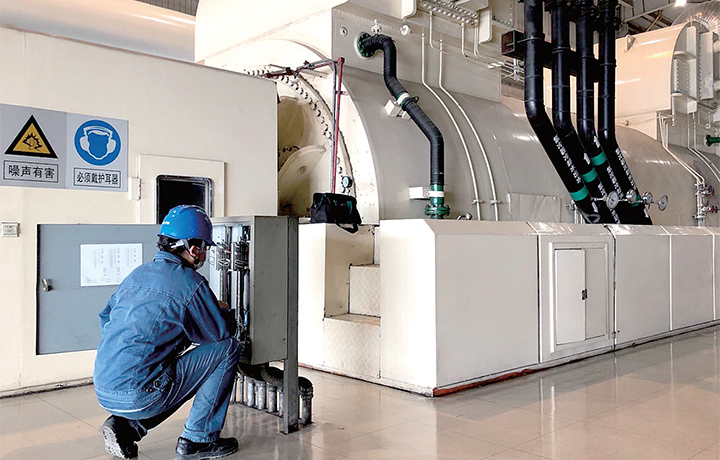 11月19日,華能沁北電廠供熱車間內(nèi),技術(shù)人員正在巡檢機(jī)組供熱設(shè)備運(yùn)行情況。