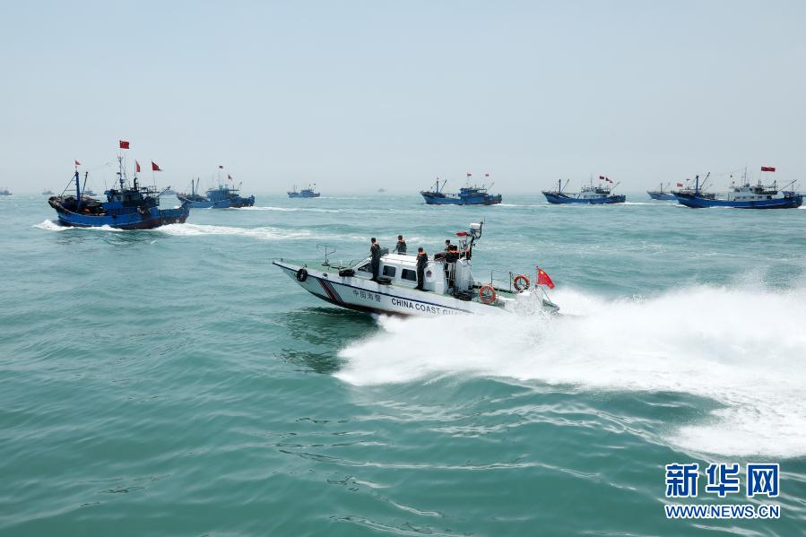 海警執(zhí)法員加強海域巡邏,防止黑惡勢力滋擾作業(yè)漁船(8月16日攝)。新華社發(fā)(翟少華 攝)
