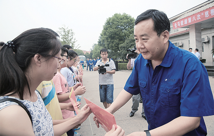 2012年,金馬能源啟動“慈善助學(xué)十年規(guī)劃”,捐助對象主要是我市山區(qū)家境貧困的本科學(xué)生,每年資助50名,每名5000元,4年每人共計2萬元。目前,已連續(xù)9年為450名貧困大學(xué)生發(fā)放了775.5萬元善款,創(chuàng)下了濟(jì)源捐資助學(xué)之最。