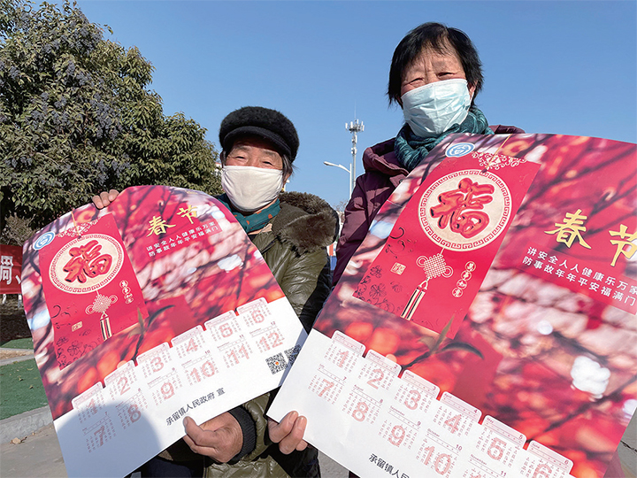 承留鎮(zhèn)創(chuàng)新形式將傳統(tǒng)節(jié)日與安全知識相結(jié)合,制作成新年日歷,發(fā)放給轄區(qū)內(nèi)群眾,進一步提升群眾安全意識,倡導(dǎo)群眾安全過年。記者 趙新迪 攝