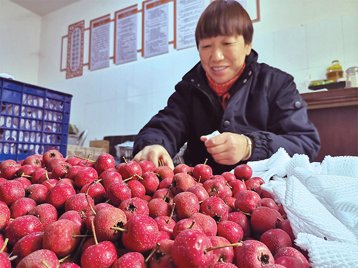 1月16日,在位于坡頭鎮(zhèn)電商扶貧大賣場的某電商包裝車間內(nèi),工人正在精心包裝本地農(nóng)民種植的山楂、核桃等農(nóng)產(chǎn)品。