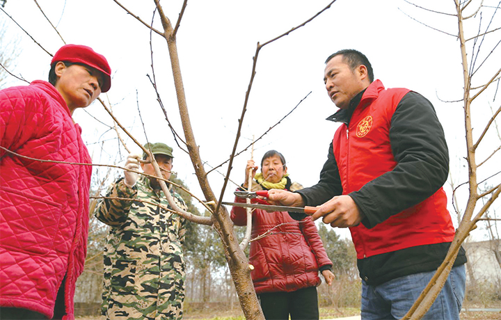 冬季正是桃樹修剪的好時期,科技志愿者深入田間地頭,為群眾講解、示范修剪方法,讓群眾進(jìn)一步了解相關(guān)知識,從而促進(jìn)產(chǎn)量提高。記者 李浩 攝