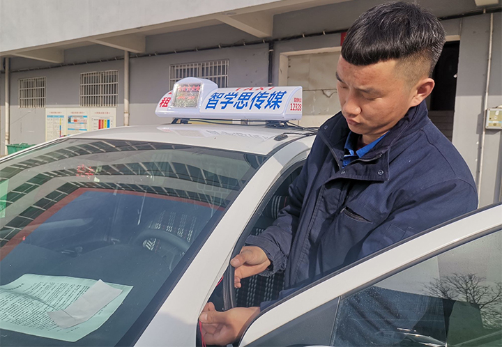 曹光開了多年出租車,看到車上安裝好的新設(shè)備,非常開心?!皼]乘客時頂燈顯示屏會顯示‘空車’,載上乘客后會顯示‘有客’,乘客看得更清楚了。此外,當司機遇到危險時,觸動車內(nèi)的報警按鈕,頂燈上還會顯示求救信號,這下夜里出車就安心了?!辈芄庀蛴浾呓榻B。
