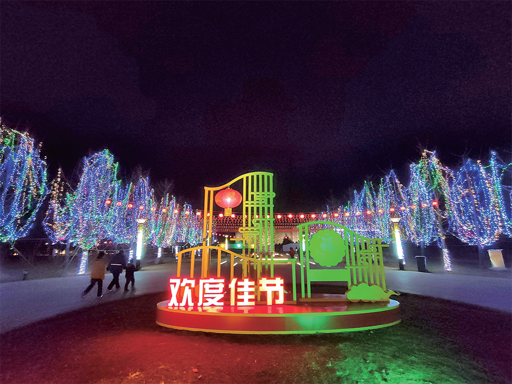 為迎接新春佳節(jié)的到來(lái),古軹公園張燈結(jié)彩、裝扮一新,大門口及主景觀區(qū),用1500米六彩燈帶、51串光纖彩串、100米暖光燈帶營(yíng)造出“火樹(shù)銀花不夜天”的景觀效果;將1100米8號(hào)國(guó)旗和200多個(gè)福字燈籠高高掛起,年味兒漸濃。(文/圖 記者 李浩)