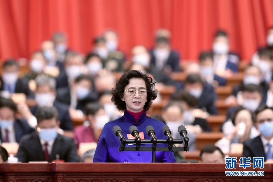 3月7日,全國政協(xié)十三屆四次會議在北京人民大會堂舉行第二次全體會議。這是韋震玲委員作大會發(fā)言。新華社記者 丁海濤 攝